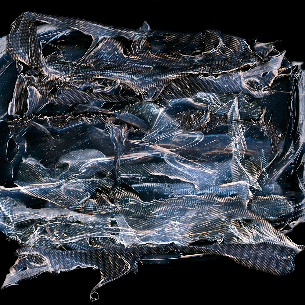 The photograms were also then scanned back into the computer. Using a 3D computer program to create virtual forms, the images were used as textures, then multiplied to create new scenes before being realized as photographs. The work Storm is an example.
